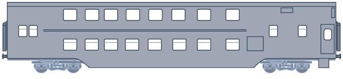 Double-decker carriage with open-plan seating. Model 61-4492.