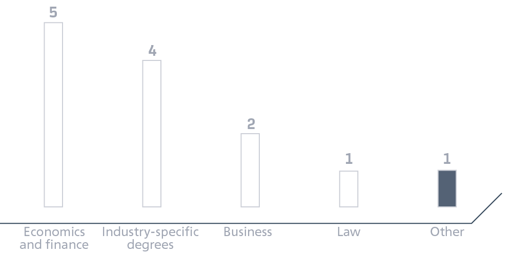 Educational background of DirectorsDirectors Mikhail Akulov, Valery Veremeev, Irina Kostenets, and Semyon Smolyak each have two higher education degrees. Directors Valery Veremeev, Olga Gnedkova, Yuri Saakyan, and Irina Shytkina each have an academic degree.