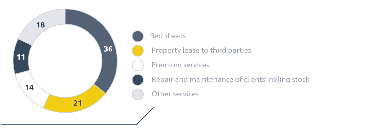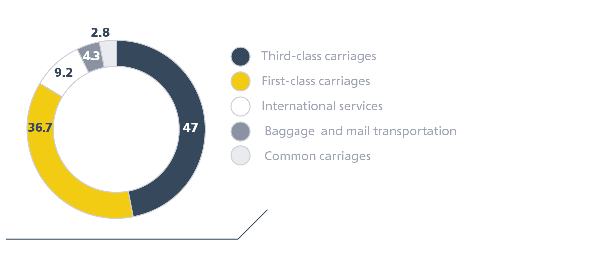 Revenue from passenger services in third-class and common carriages reached RUB 79.2 billion. A 3.1% growth year-on-year was due to the fare indexation by 10%, while passenger turnover in this segment declined by 3.3%.